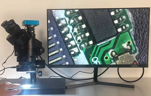 بهترین نوع روشنایی برای میکروسکوپ تعمیرات، رینگ لایت LED است که نور یکنواخت و بدون سایه را فراهم میکند. قابلیت تنظیم شدت نور برای کار با سطوح براق برد مدار چاپی ضروری است.