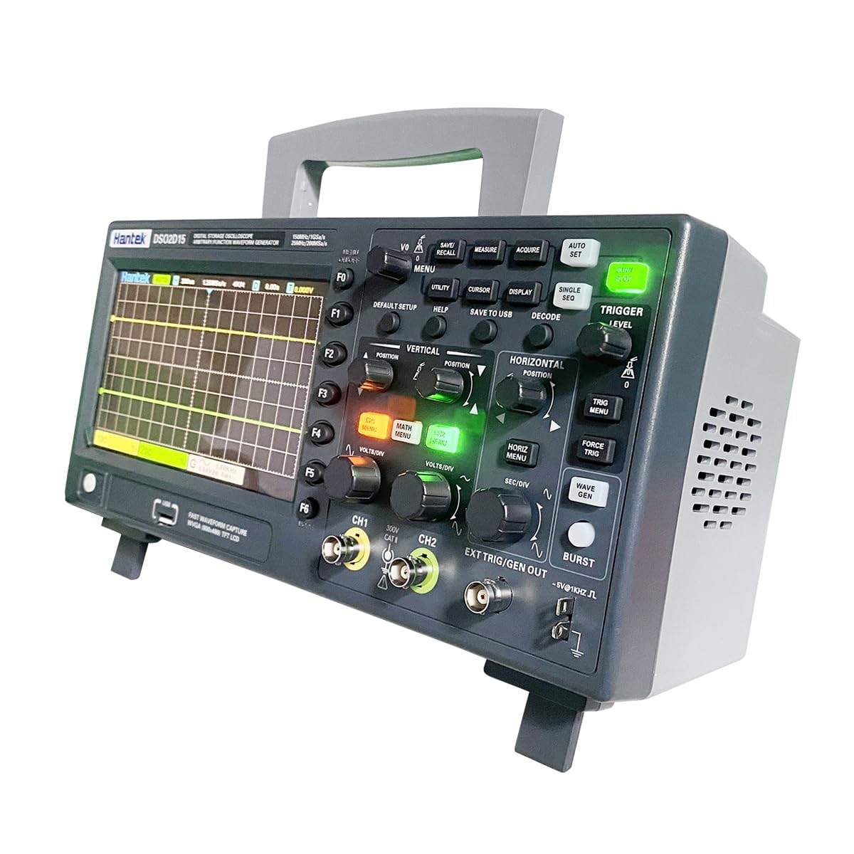 کیفیت و دقت اسیلوسکوپ رومیزی هانتک مدل DSO2D15 بسیار مناسب و پاسخگوی نیازهای مهندسین، آزمایشگاههای آزمون و آموزشگاهها، دانشگاهها و مدارس فنی و تعمیرکاران می باشد. این برند در ایران بسیار جا افتاده و شناخته شده و مقبول است و میتواند 32 نوع اندازه‌گیری اتوماتیک را انجام دهد.