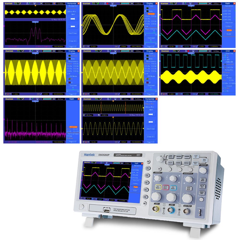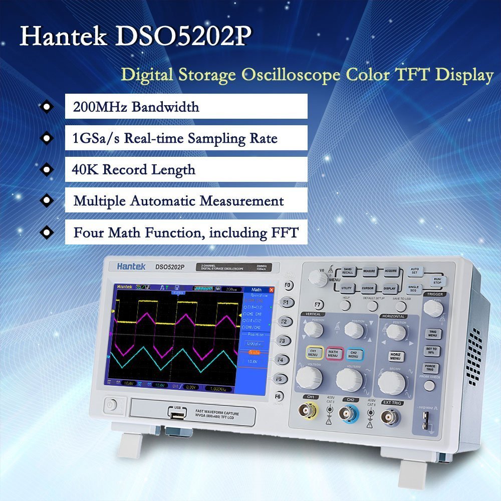 اسیلوسکوپ رومیزی هانتک مدل DSO5202P یک نوسان نمای بسیار محبوب از برند HANTEK می‌باشد که برای مهندسین ، آزمایشگاههای آزمون و آموزشگاهها، دانشگاهها و مدارس فنی و تعمیرکاران بسیار مناسب میباشد. فرکانس کاری این اسیلوسکوپ 200 مگاهرتز بوده و نرخ نمونه برداری آن 1 G.Sam/sec است.