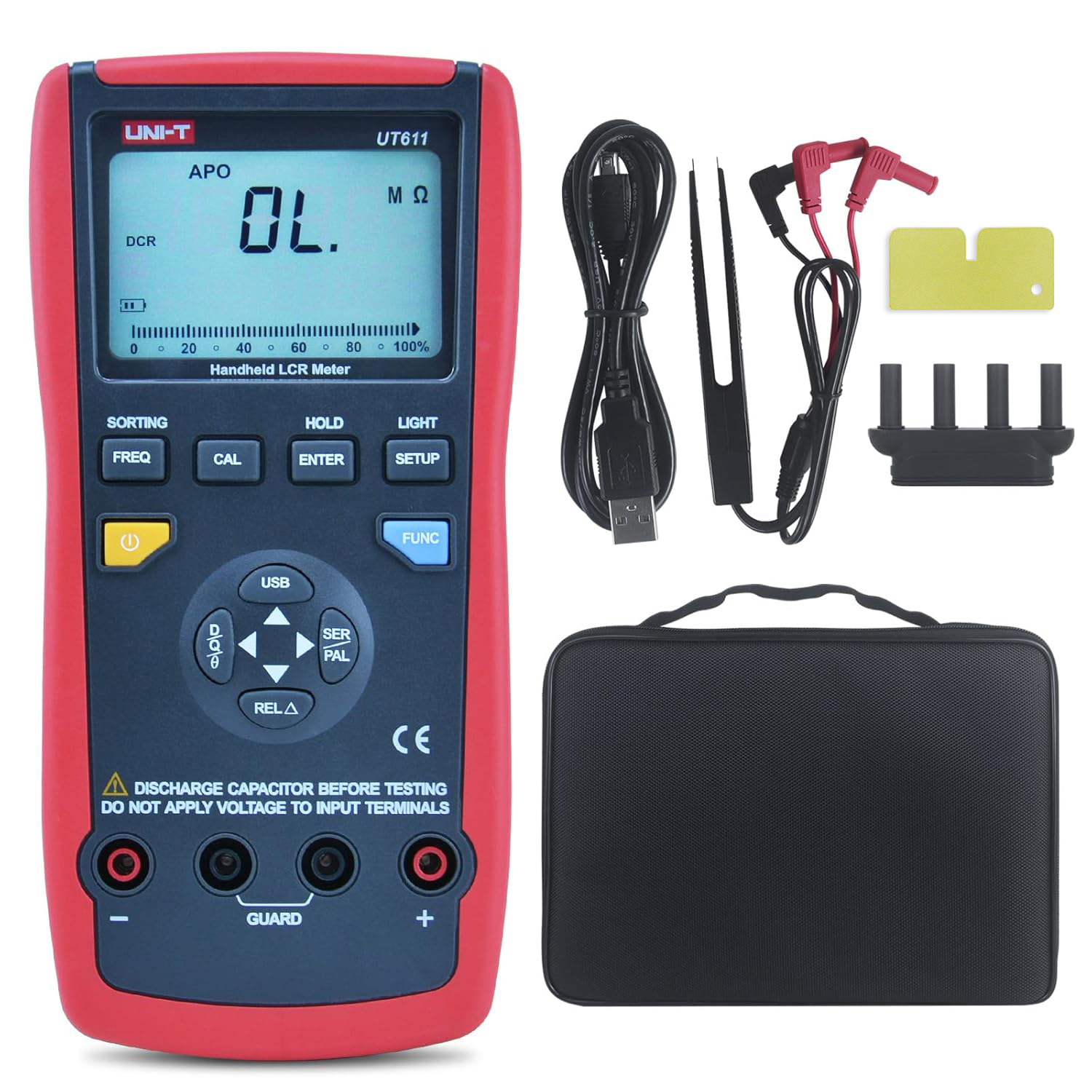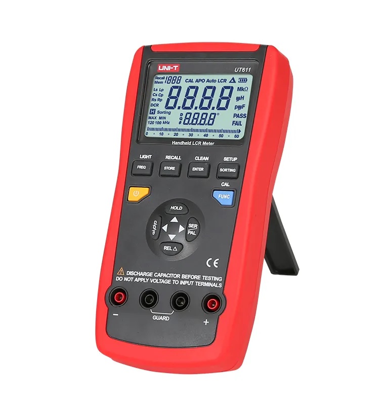 ال سی آر متر پرتابل UT611 با گستره فرکانسی 1 تا 10 کیلوهرتز، توانایی اندازه گیری اندوکتانس، ظرفیت خازنی، مقاومت، مقاومت DC سلف، مقاومت سِری خازن، ضریب کیفیت، ضریب اتلاف، امپدانس و زاویه فاز را دارد.