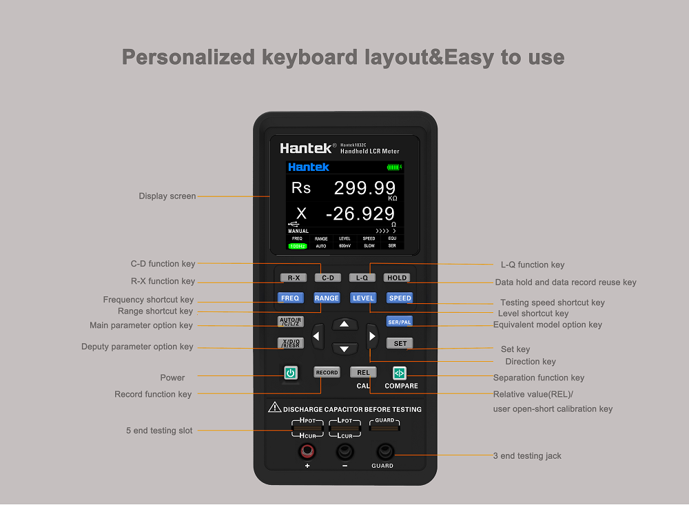 ال سی آر متر هنتک 1832C HANTEK با بیشینه فرکانس کاری 40 کیلوهرتز، دقت خوبی را در اندازه‌گیری ها ارائه می‌دهد. این دستگاه داری یک نمایشگر رنگی LCD TFT 2.8 اینچی با نمایش همزمان 2 دادۀ اندازه‌گیری است و از کامپیوتر شخصی پشتیبانی می‌کند.
