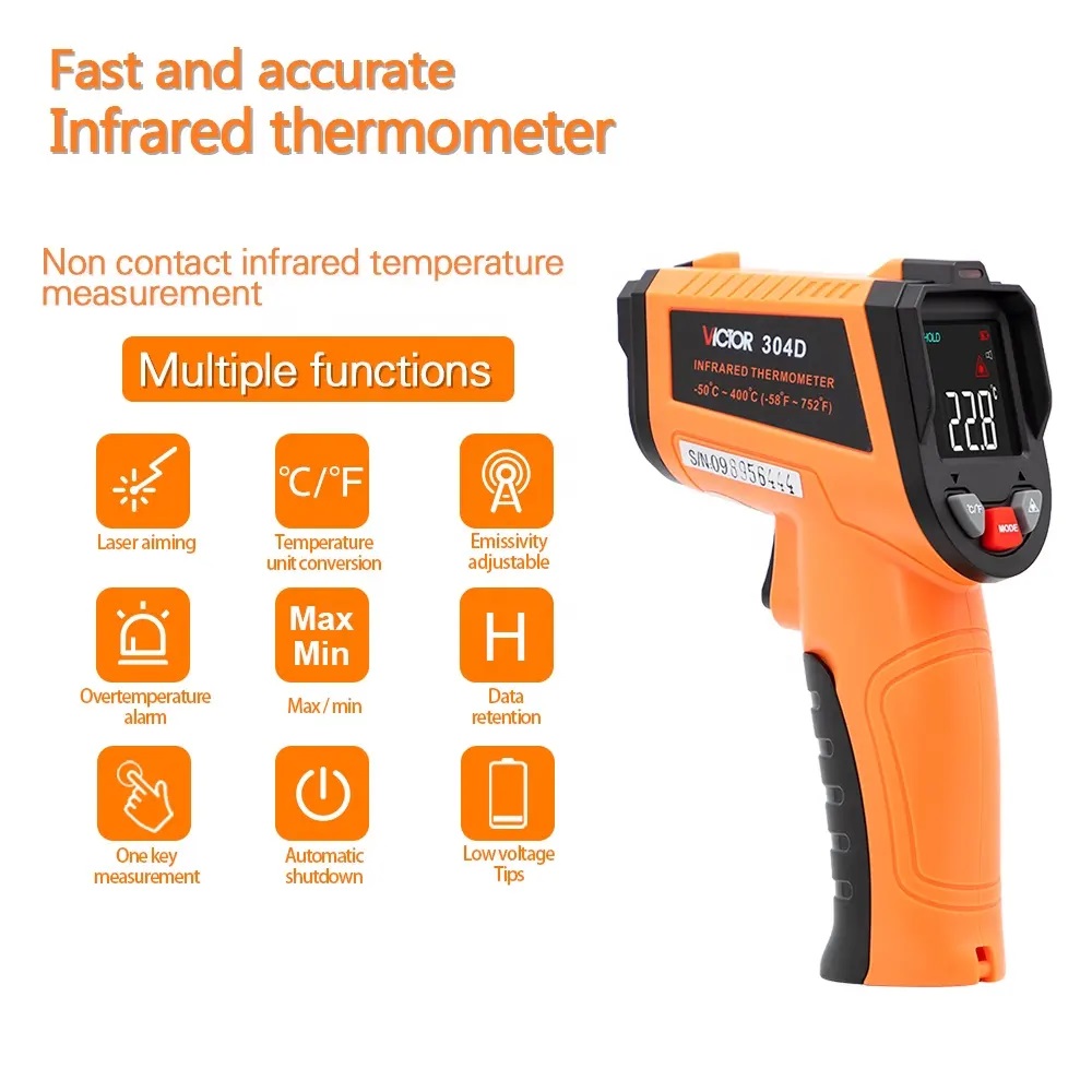 304D یک دماسنج مادون قرمز غیرتماسی از شرکت ویکتور چین است که علیرغم قیمت پایین یک دستگاه حرفهای با دقت بالا برای اندازهگیری دما از راه دور است.