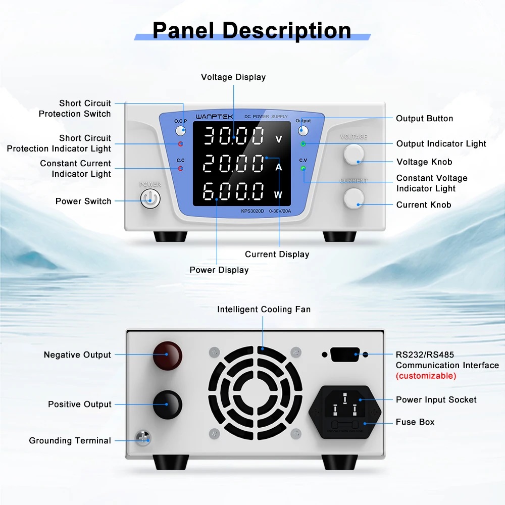 منبع تغذیه 30 ولت 20 آمپر سوئیچینگ WANPTEK مدل KPS3020D