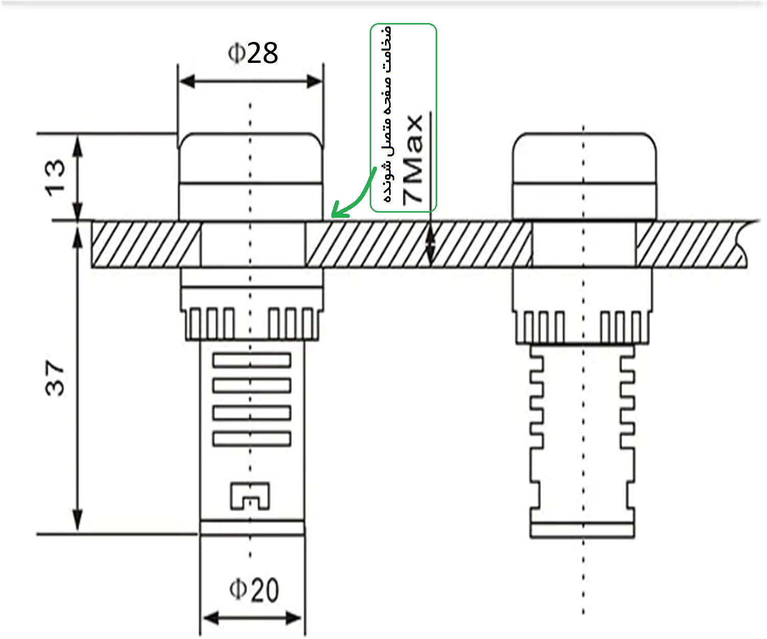 – قطر پایه: 22 میلیمتر. نیاز به سوراخ 22mm روی پنل دارد
