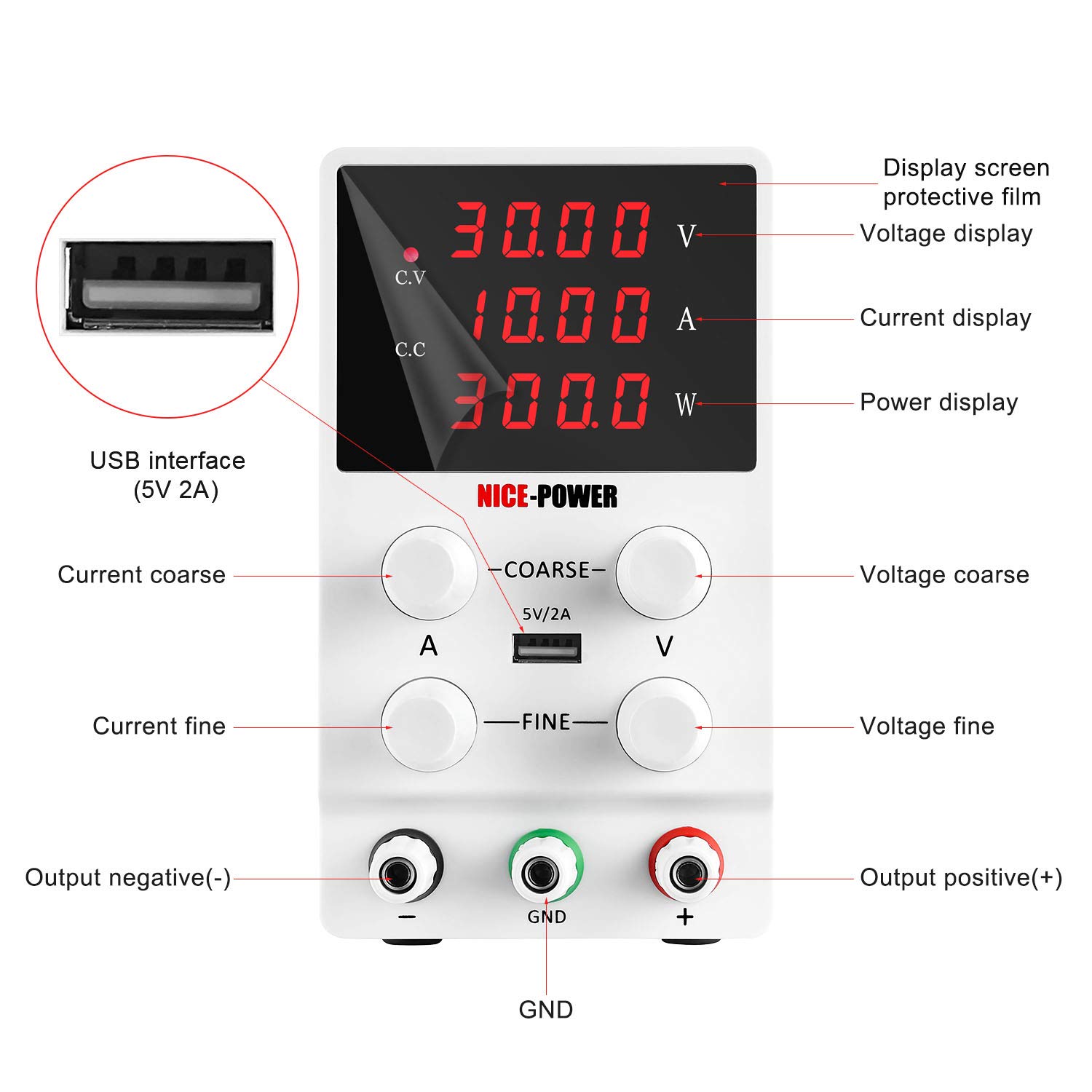 منبع تغذیه سوئیچینگ دیجیتال NICE-POWER SPS3010 30V 10A 300W با 3 نمایشگر دیجیتال، ولوم های ولتاژ و جریان DC متغیر قابل تنظیم