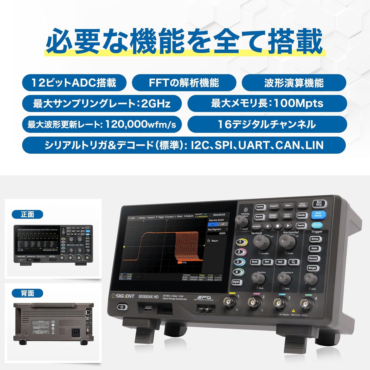 اسیلوسکوپ‌ SDS804X HD دارای حداکثر طول رکورد 50Mpts است و قابلیت نمایش ۴ کانال آنالوگ + ۱۶ کانال دیجیتال با قابلیت تجزیه و تحلیل سیگنال مخلوط (ترکیبی) را دارد.