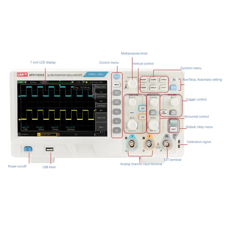 اسیلوسکوپ آلترا فسفر یونی-تی UNI-T UPO1102CS – دو کانال 100MHz و 1GSa/s
