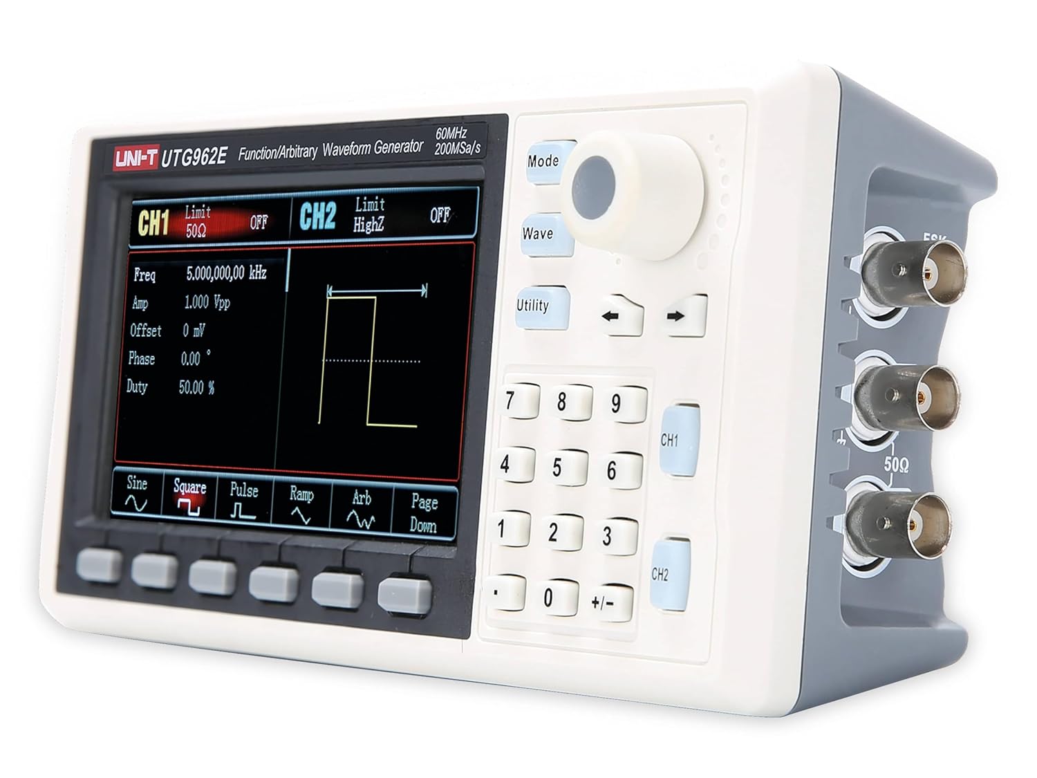 فانکشن ژنراتور 2 کانال 60 مگاهرتز UNI-T UTG962E از جمله مولدهای سیگنال است که در عین قد و قواره کوچک، به جرأت میتوان گفت از بهترین های موجود در بازار است. این سیگنال ژنراتور با استفاده از تکنولوژی سنتز دیجیتال مستقیم DDS شکل موج های بسیار دقیق و پایدار و سطح نویز ناچیز تولید میکند که میتواند به مهندسین محترم در طراحی و تست بوردهای مختلف کمک کند و قضاوت در مورد نتایج اندازهگیری پارامترهای الکترونیکی را با اطمینان بالایی بسیار ساده نماید.