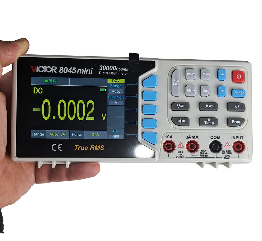 مولتی‌متر رومیزی ویکتور 8045 mini یک مولتیمتر دقیق رومیزی و در عین حال قابل شارژ با گسترۀ اندازه‌گیری وسیع و مشخصۀ بارز اندازه گیری میکرو ولت تا 10 آمپر و 1000 ولت و مقاومتهای بزرگ تا 300 مگااهم است.